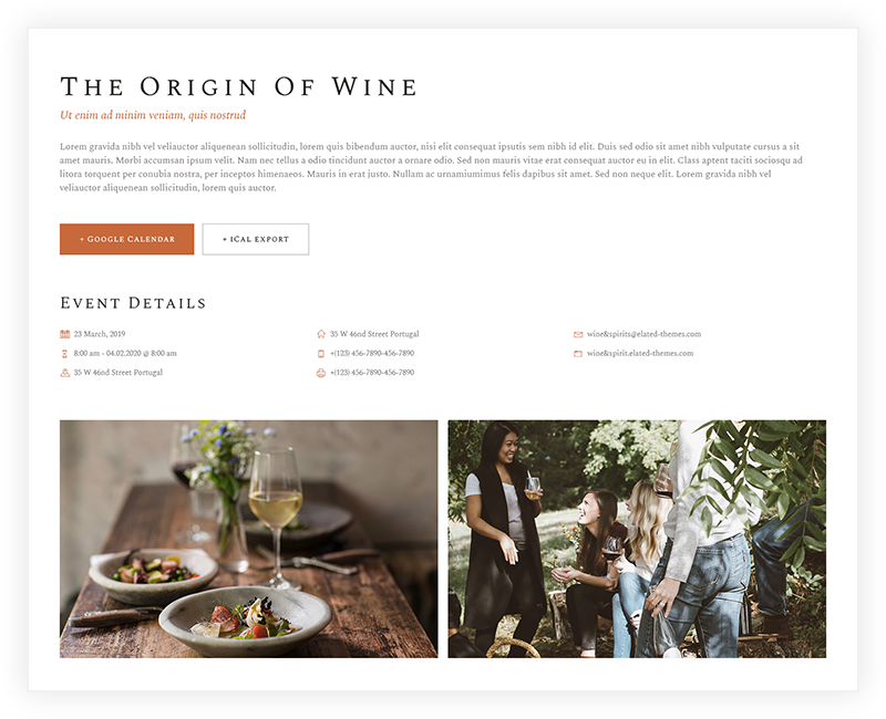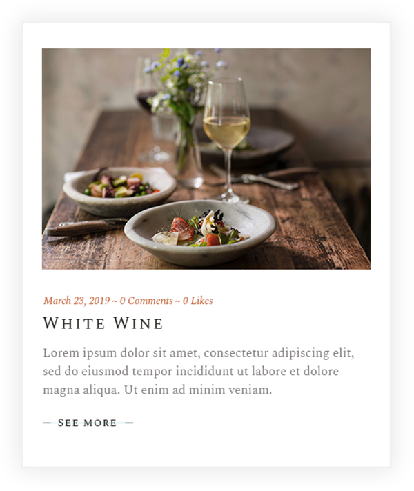 Create a simply beautiful website for your wine bar, liquor store or vineyard with Aperitif, a theme we refined to perfection.